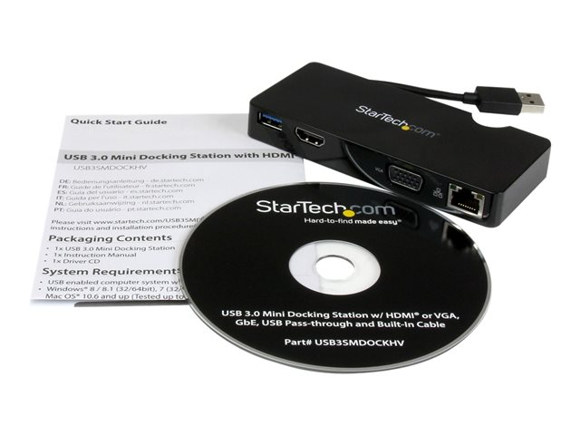 USB 3.0 Mini Docking Station w/ USB, GbE Ports - Portable Universal Laptop Travel Hub (USB3SMDOCKHV) - Docking station - USB - HDMI - 1GbE - for P/N: ARMPIVOT, ARMPIVOTE, ARMPIVSTND, ARMSLIM, ARMUNONB