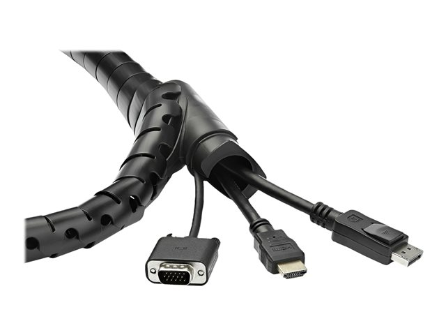 Here's a fast, easy solution to organizing your cables. This spiral cable management sleeve wraps around your cables to tidy up your work area, while protecting your cords from abrasion. The expandable sleeve is conveniently sized: This coiled cable sleeve is also available in other diameters and lengths to suit your needs: 25 mm Diameter x 1.5 m Length25 mm Diameter x 1.5 m Length (1" x 4.9') - CMSCOILED; 25 mm Diameter x 2.5 m Length (1" x 8.2') - CMSCOILED2; 45 mm Diameter x 1.5 m Length (1.8" x 4.9') - CMSCOILED3 . The flexible and expandable cable cord organizer will hold multiple cables and gauges, from thin phone chargers to thick power cords. Create a tidy workspace in minutes to keep your cables neat, and still accessible, within the attractive coiled sleeve. It's a great way to provide a neat appearance for cables and equipment wiring in offices, lobbies, boardrooms, and customer-facing areas. Keeping your cables in a cable management sleeve keeps them concealed, and protects them from wear and tear under your TV or desk. Open up the side of the cable tube concealer any time, to access, add or remove cables. You can also create a breakout of cables at any point in the sleeve to re-route or replace cables. The wire management sleeve comes with a time-saving cable loading tool. You simply slide the tool along the spiral wrap to guide your cables through the cable hider sleeve. You can also trim the sleeve to the desired length. Made of durable polyethylene, the cable cover sleeve is easily reusable.
