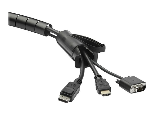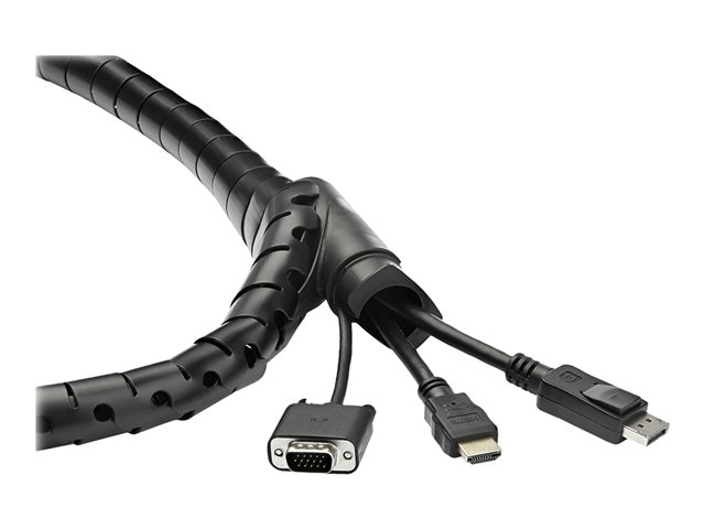 Here's a fast, easy solution to organizing your cables. This spiral cable management sleeve wraps around your cables to tidy up your work area, while protecting your cords from abrasion. The expandable sleeve is conveniently sized: This coiled cable sleeve is also available in other diameters and lengths to suit your needs: 25 mm Diameter x 1.5 m Length (1" x 4.9') - CMSCOILED; 45 mm Diameter x 1.5 m Length (1.8" x 4.9') - CMSCOILED3; 45 mm Diameter x 2.5 m Length (1.8" x 8.2') - CMSCOILED4 . The flexible and expandable cable cord organizer will hold multiple cables and gauges, from thin phone chargers to thick power cords. Create a tidy workspace in minutes to keep your cables neat, and still accessible, within the attractive coiled sleeve. It's a great way to provide a neat appearance for cables and equipment wiring in offices, lobbies, boardrooms, and customer-facing areas. Keeping your cables in a cable management sleeve keeps them concealed, and protects them from wear and tear under your TV or desk. Open up the side of the cable tube concealer any time, to access, add or remove cables. You can also create a breakout of cables at any point in the sleeve to re-route or replace cables. The wire management sleeve comes with a time-saving cable loading tool. You simply slide the tool along the spiral wrap to guide your cables through the cable hider sleeve. You can also trim the sleeve to the desired length. Made of durable polyethylene, the cable cover sleeve is easily reusable.