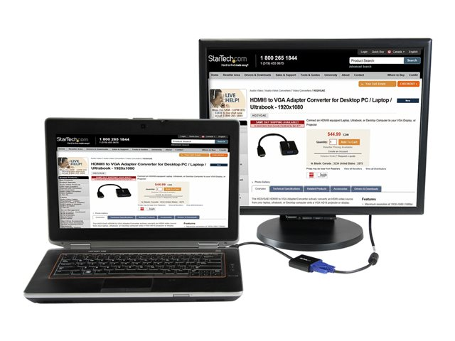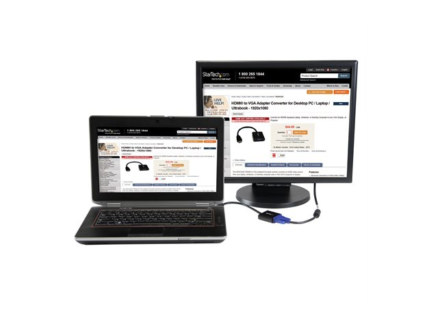 The HD2VGAE2 HDMI to VGA adapter allows you to connect an HDMI output from your laptop, ultrabook, or desktop computer onto a VGA monitor or projector, saving the cost of upgrading to an HDMI compatible display. Intended for outputting user generated content such as presentations, and work documents, the HDMI to VGA converter can also work to increase your productivity by extending your computer's desktop onto a secondary monitor, doubling available workspace. With no need for an external power source, and support for resolutions up to 1080p (1920 x 1080), this active HDMI to VGA adapter offers a compact and portable solution for connecting a high-definition VGA display. Looking for an HDMI to VGA converter for your Chromebook? Use the HD2VGAMICRO.