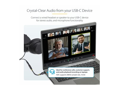 Startech USB-C Audio Adapter to 3.5mm TRRS Jack, Headphone Aux Dongle