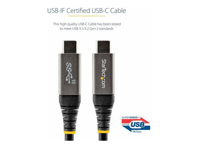 StarTech.com 3ft (1m) USB C Cable 10Gbps, USB-IF Certified USB-C Cable, USB 3.1/3.2 Gen 2 Type-C Cable, 100W (5A) Power Delivery Charging, DP Alt Mode, USB C to C Cord, Charge & Sync