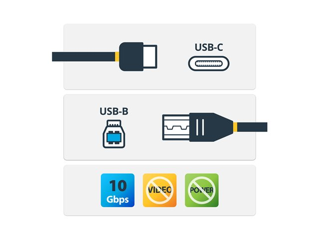 Connect USB 3.1 or 3.0 USB-B devices to your USB-C host. Need to connect a new USB-C device to a USB-B device? This 1m USB-C to USB-B cable is the perfect solution. It's also compatible with Thunderbolt 3 ports. With a bandwidth of 10 Gbps, this USB 3.1 Gen 2 cable lets you connect your USB-B devices such as hard drive enclosures and docks to your laptop, at speeds like never before. Now, you can spend less time transferring and backing up your data and more time focusing on your projects and presentations. USB 3.1 is twice the speed of USB 3.0 and 20x faster than USB 2.0. Plus, the cable provides up to 3A for powering your devices, where supported. You'll also be able to connect your older USB 3.0 peripheral devices to newer computers with data transfer speeds of up to 5 Gbps.