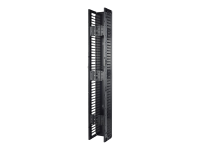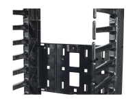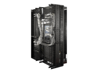 This 12” wide, high capacity vertical cable manager for 2 and 4 Post open frame racks features a single-sided cable channel with multiple internal cable tie-off locations and smooth plastic fingers at 1U increments for organized patching applications.