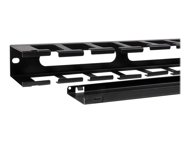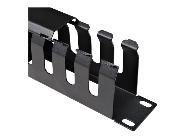 Organize cables in your server rack or cabinet with a horizontal, covered cable duct. The CMDUCT1UX 1U Finger Duct Cable Management Panel mounts to a standard 19" 2 or 4-post rack to help you organize horizontal cabling, through a covered cable duct. This TAA compliant product adheres to the requirements of the US Federal Trade Agreements Act (TAA), allowing government GSA Schedule purchases. The cable organizer features a removable top cover that makes it easy to add or remove bundled cables quickly. The duct also offers a series of fingers on either side, as well as pass-through holes at the back to help you route your cables where you need them, and reduce cable strain in the process. Made of high-quality steel, the cable manager is a durable solution for your server room or wiring closet. For easy installation, this horizontal cable organizer comes complete with 2 sets of rack screws (M5 and M6).