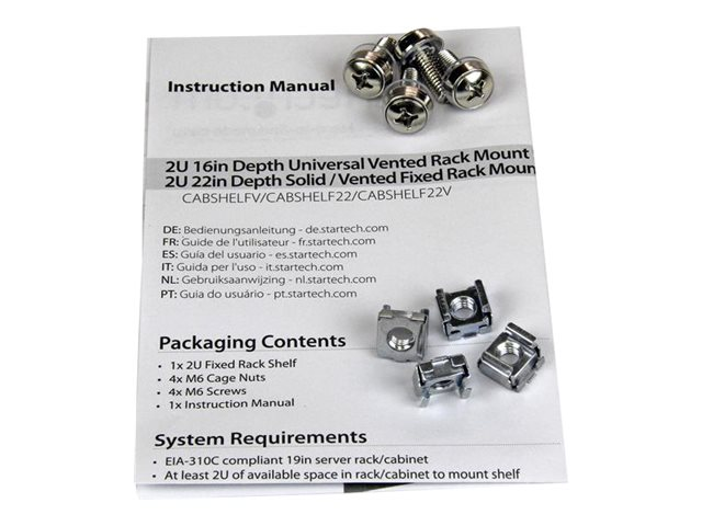 Startech 1U Server Rack Shelf, 2U 22in Universal Fixed Vented Network Rack Shelf/Cantilever Tray for 19" AV/Data/Network Equipment Enclosure w/Cage Nuts & Screws, 50lbs Weight Cap.