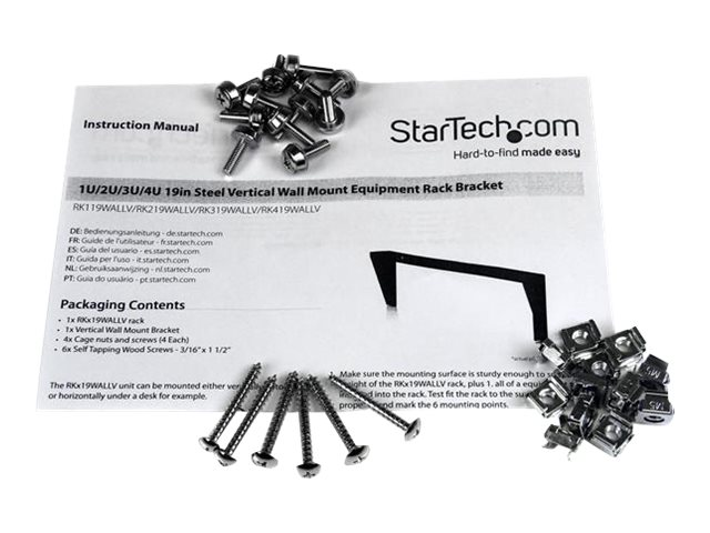 Mount a server, network or telecommunications device vertically with this 2U wall-mountable rack. The RK219WALLV 2U 19in Steel Vertical Wall Mount Equipment Rack Bracket offers a versatile storage solution allowing rackmount equipment (Network devices, power strips, patch panels) to be mounted vertically (flush with wall) to save space. Alternatively, the 2U bracket can be installed horizontally under a desk, making it easy to access installed equipment directly from your workspace. This TAA compliant product adheres to the requirements of the US Federal Trade Agreements Act (TAA), allowing government GSA Schedule purchases. Perfect for SoHo (small office, home office) environments, the wallmount bracket features a sturdy steel design constructed to EIA-310 19in rack standards, and offers space-savings for environments lacking the footprint space for a full size server equipment rack. Suitable for mounting on virtually any wall/ceiling surface (e.g. drywall), the bracket mounting holes are positioned at exactly 16in apart, matching standard construction framework. Need more storage space? StarTech.com also offers a RK319WALLV 3U 19in Wallmount Bracket and a RK419WALLV 4U 19in Wallmount Bracket.
