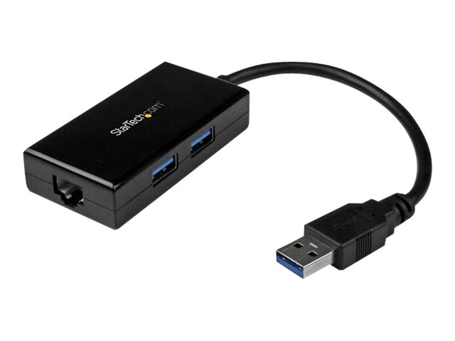 Add Gigabit Ethernet connectivity and two USB 3.0 ports to your laptop or tablet through a single USB port. Add powerful network access to your tablet, Ultrabook or laptop, even if it doesn't have a built-in RJ45 port. This USB 3.0 to Gigabit network adapter gives you wired network access - and provides two USB 3.0 pass-through ports allowing you to connect additional USB devices. Ideal for office or home use, the USB 3.0 network adapter supports full Gigabit bandwidth by harnessing the performance of USB 3.0 (5 Gbps). You can quickly access very large files over a Gigabit network, saving valuable time every day. Get up and running quickly. Simply plug this Ethernet cable adapter into the USB port on your laptop and connect to your network. The network adapter chipset provides native driver support, so you don't have to worry about installing additional software. Enhance the capabilities of your laptop or tablet by connecting USB devices like printers or external solid-state drive or hard drive enclosures using the two USB 3.0 ports. You can also connect your mouse, keyboard, flash drive or other low-power USB devices, with no extra power required. Compact and portable, this USB Gigabit network adapter is the ideal desktop network adapter or laptop accessory. You don't have to carry a power adapter with you to use it, because it's powered directly from the host USB port.