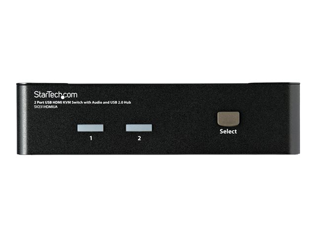 Share a keyboard, mouse and HDMI monitor between 2 multimedia computers. The SV231HDMIUA 2-port USB HDMI KVM Switch lets you control two USB-enabled multimedia computers or devices with HDMI video interfaces, using a single peripheral set/console (USB keyboard, mouse, monitor, speakers and microphone). A highly versatile KVM solution, the USB HDMI KVM Switch features an integrated 2-port USB 2.0 hub that lets selected computers access shared high speed USB devices, eliminating the cost of duplicate USB peripheral purchases. Ensuring high quality video capability, the HDMI KVM switch supports HD resolutions of up to 1920 x 1200. Offering genuine digital signal transmission over the cable, this switch can be used to share one HD panel between multiple HDMI sources such as Blu-Ray players, Video Game consoles and HD media centers. The switch also supports audio and microphone switching functions and allows you to select connected computers, USB device hub ports and audio/mic channels either simultaneously or independently using either front-panel push-buttons or keyboard hotkeys.