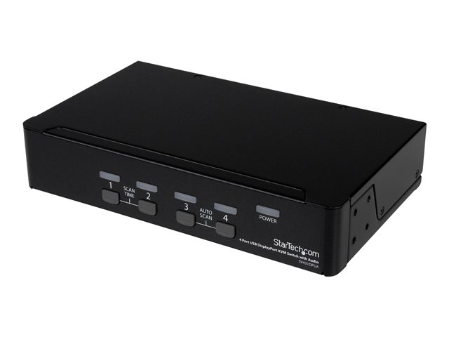Share keyboard, mouse, and DisplayPort display between four HD multimedia systems. The SV431DPUA 4 Port USB DisplayPort KVM Switch with Audio combines next generation display standards with seamless KVM control of up to 4 connected PC or Mac computers. Featuring DisplayPort resolutions of 2560x1600 @60Hz, as well as offering both 7.1 HD digital audio (with supporting displays and sources) and separate 3.5mm stereo audio support. An integrated USB 2.0 hub allows you to share 2 additional peripherals among attached computers as if they were directly connected. Suitable for high quality static imaging applications such as health care (MRI, X-ray diagnostics, etc.), a maximum resolution of 3840x2400 is supported at reduced refresh rates. A simple yet comprehensive solution, the 4-port KVM features both front-panel push-button and hotkey switching, and offers a small form factor with rear connection ports, to minimize workspace disruptions. If you'd like to mount this KVM switch to your server rack, StarTech.com offers a 1U Rackmount Bracket (sold separately) that turns this KVM into a rackmountable KVM.