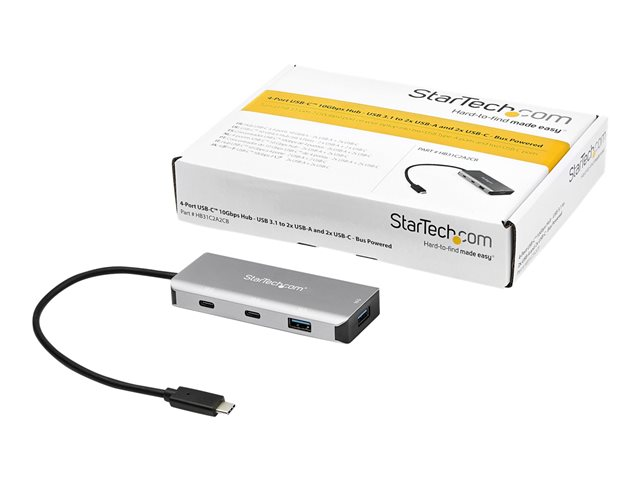 Startech 4 Port USB C Hub w/ 2x USB A & 2x USB C, SuperSpeed 10Gbps USB Type-C 3.1/3.2 Gen 2 Hub, USB Bus Powered, Portable USB-C to USB Adapter Hub, Aluminum, 9.8" (25cm) Cable