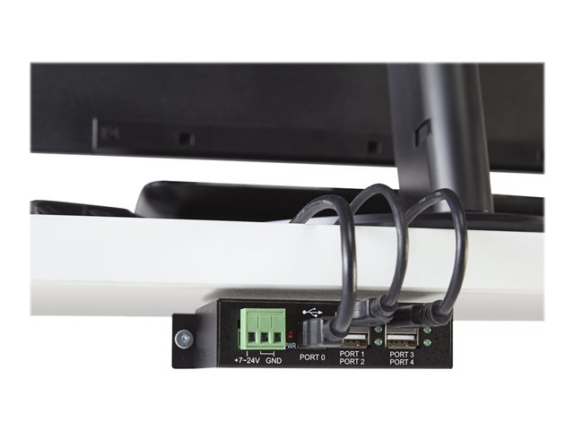 4 Port Rugged Industrial USB 2.0 Hub - Hub - 4 x USB 2.0 - DIN rail mountable - DC power - for P/N: ITB20D3250, MSDREADU2OTG, USB2HAB15, USB2HAB30AC, USB2HAB50AC, USB2HABM1, USB2HABM6RA